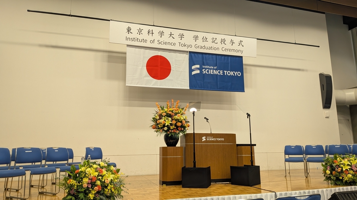 学院の修士学生代表(10人しか卒業してないが)ということで、大学院の学位記授与式にも参加してきた。こういう式典に参加するの高校の卒業式ぶりくらい久しぶりな気がするけど、椅子に1-2時間くらいじっと座ってるのかなり苦痛。